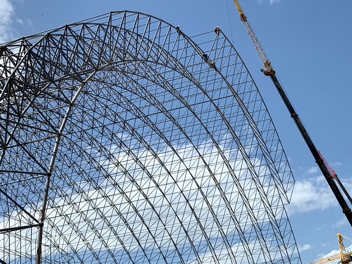 (2)网架加工前应对现场尺寸进行复测,确认无误后方可进行加工、安装;网架制作、运输、安装应遵守《空间网格结构技术规程》JGJ7-2010、《钢网架广丰县螺栓球节点》JG/T 10-2009、《钢网架广丰县螺栓球节点用高强度螺栓》 GB/T 16939-2016、《广丰县钢结构广丰县工程广丰县施工规范》 GB50755-2012、《广丰县钢结构广丰县工程施工质量验收标准》 GB50205-2020。
